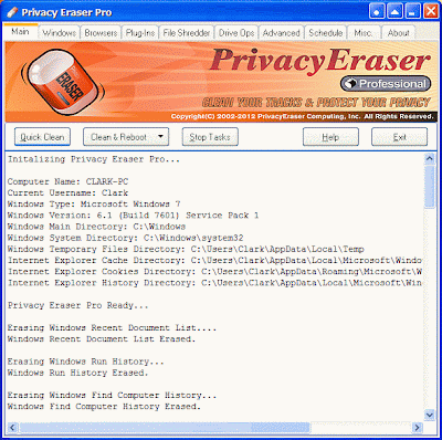 Privacy Eraser Pro is a very useful program for cleaning up the history of your activities on a computer. Maybe you don't realize that Windows and other software programs store information about what you have done, what documents you have used, what web sites you have visited, what images and movies you have seen, and various other activities you have performed. The Windows built-in functions will not protect you, most of the tracks can not be erased with them. Therefore, anyone else can see what you have been doing on your computer, which raises several privacy concerns. Furthermore, much of your activity information takes up valuable disk space, and recovering this space can be very beneficial.